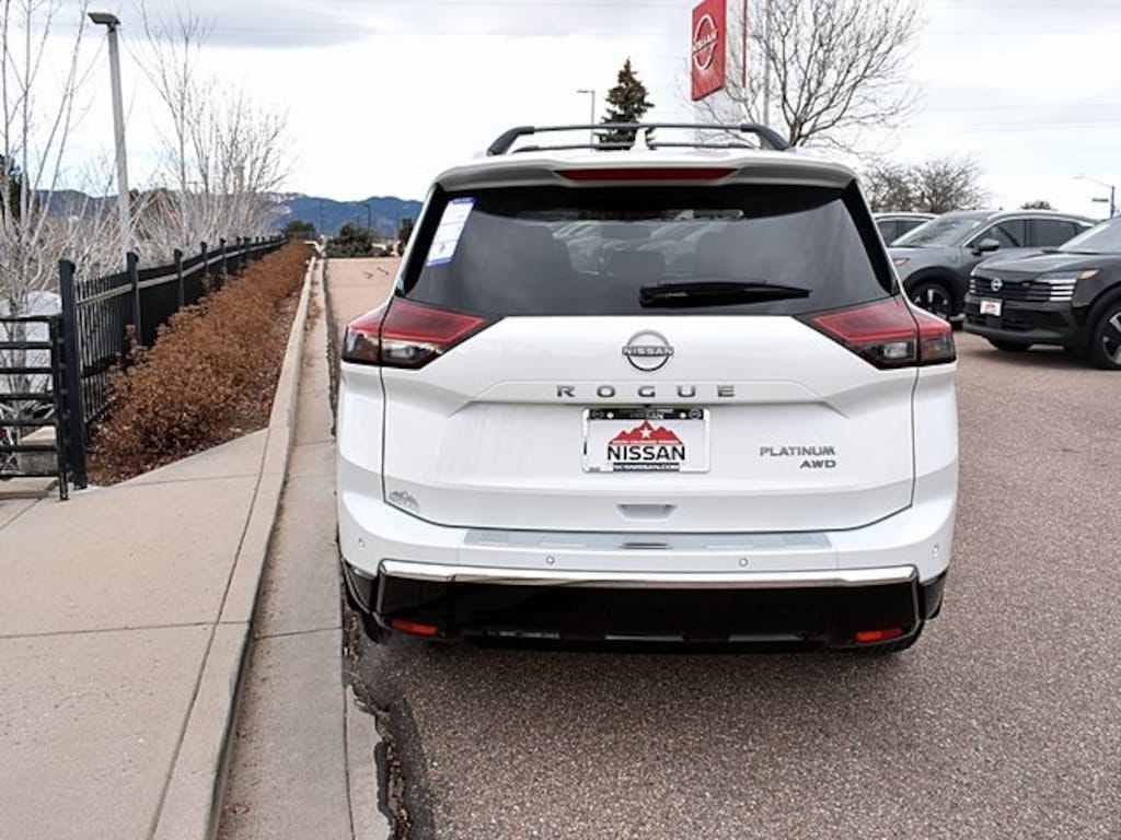 2026 Nissan Rogue Platinum White Pearl AWD CVT with Xtronic 1.5L DOHC 28/35 City/Highway MPG Your final price is based on dealer discounts plus applicable rebates for the zip code where the vehicle will be titled. For the maximum discount, you must purchase from in-stock inventory and finance with Nissan Motor Acceptance Corp (NMAC). NMAC financing rebates, APR and lease rates can vary, based on your zip code. While we make every effort to ensure the data listed here is correct, there may be instances where some of the offers, options or vehicle features may be listed incorrectly as we get data from multiple data sources. Dealer is not responsible for miss pricing vehicles online. Please verify any information in question with a dealership sales representative. Must qualify for all applicable rebates. Prices include all active discounts and $799 dealer handling fees. Exclusion may apply. Tax, tag, dealer installed accessories, electronic filing fee and title extra. See dealer for details. Price includes: $3500 - Nissan Customer Cash. Exp. 02/02/2026