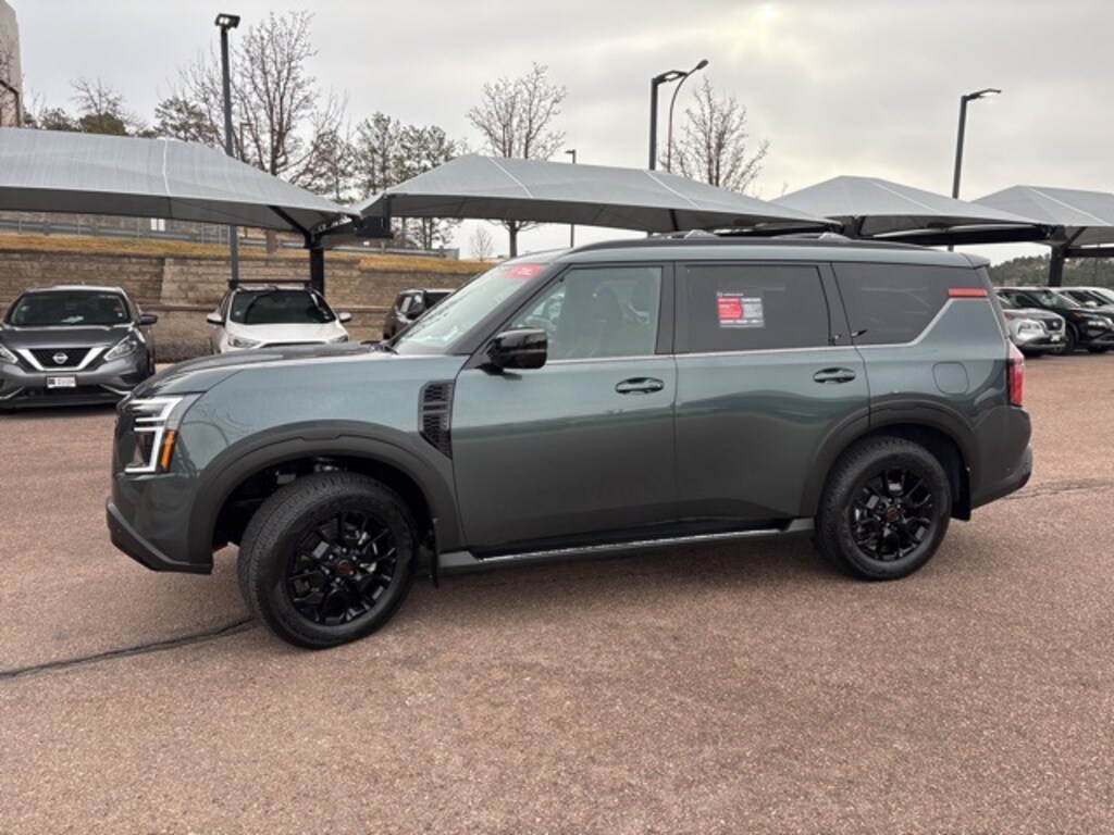 New Ownership and a New Way of Business!! This vehicle features: PRO-4X Premium Package with Split Bench (Biometric Cooling, Climate Controlled Heated and Ventilated Front Seats, Hands-Free Power Liftgate, Heated 2nd Row Seats, in-Car Camera, Intelligent Dash Cam, Intelligent Rear View Mirror (I-RVM), and Panoramic Moonroof), 12 Speakers, 3rd row seats: split-bench, 4-Wheel Disc Brakes, ABS brakes, Adaptive suspension, Air Conditioning, Alloy wheels, AM/FM radio: SiriusXM w/360L, Anti-whiplash front head restraints, Apple CarPlay/Android Auto, Auto High-beam Headlights, Auto tilt-away steering wheel, Auto-dimming door mirrors, Auto-dimming Rear-View mirror, Auto-leveling suspension, Automatic temperature control, Brake assist, Bumpers: body-color, Compass, Cross Bars, Delay-off headlights, Driver door bin, Driver vanity mirror, Dual front impact airbags, Dual front side impact airbags, Electronic Stability Control, Emergency communication system: NissanConnect Services, Four wheel independent suspension, Front anti-roll bar, Front Bucket Seats, Front Center Armrest, Front dual zone A/C, Front fog lights, Front reading lights, Front Tow Hooks, Fully automatic headlights, Garage door transmitter: myQ Connected Garage, Genuine wood dashboard insert, Heated door mirrors, Heated Front Bucket Seats, Heated front seats, Heated steering wheel, HVAC memory, Illuminated entry, Illuminated Kick Plates, Knee airbag, Leather steering wheel, Low tire pressure warning, Memory seat, Navigation system: Google Maps, Occupant sensing airbag, Outside temperature display, Overhead airbag, Overhead console, Panic alarm, Passenger door bin, Passenger vanity mirror, Power door mirrors, Power driver seat, Power Liftgate, Power passenger seat, Power steering, Power windows, Premium Paint, PRO-4X Carpeted Floor Mats with Bench Seat, Pro-4x Leather Quilted Insert Seat Trim, PRO-4X Mud Guards, Radio: NissanConnect with SiriusXM 360L, Rain sensing wipers, Rear air conditioning, Rear anti-roll bar, Rear reading lights, Rear seat center armrest, Rear window defroster, Rear window wiper, Reclining 3rd row seat, Remote keyless entry, Security system, Speed control, Speed-sensing steering, Speed-Sensitive Wipers, Split folding rear seat, Spoiler, Steering wheel memory, Steering wheel mounted audio controls, Tachometer, Telescoping steering wheel, Tilt steering wheel, Traction control, Trip computer, Turn signal indicator mirrors, Variably intermittent wipers, Voltmeter, and Wheels: 20" x 8.5J Painted PRO-4X Alloy.